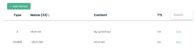 The first thing we need to do is point the registrar’s DNS records for our domain name to the IP address of the box we’re hosting Traefik on, I am using Njalla and created these records: